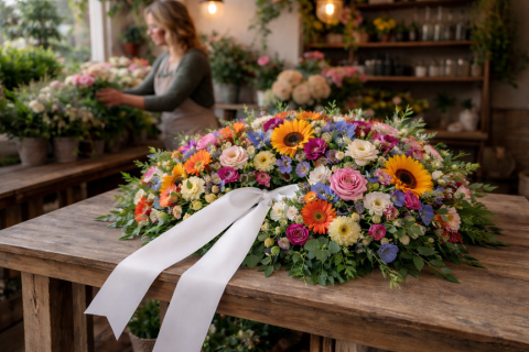 Bloemen als laatste groet — met liefde gemaakt, met zorg gebracht.